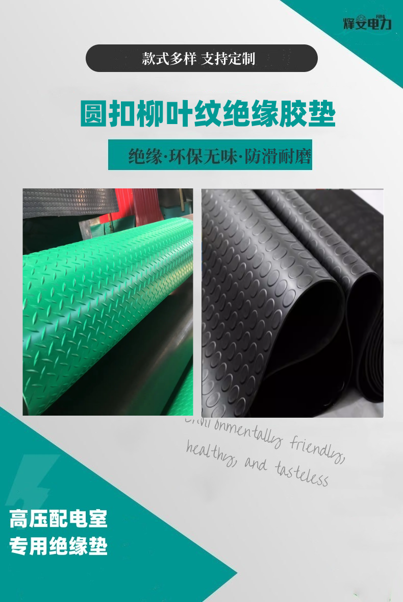 防滑柳葉紋絕緣膠墊,圓扣凸點(diǎn)絕緣膠板