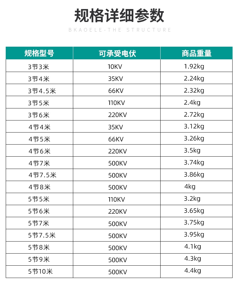 產(chǎn)品規(guī)格:1m到6m,10-500kv